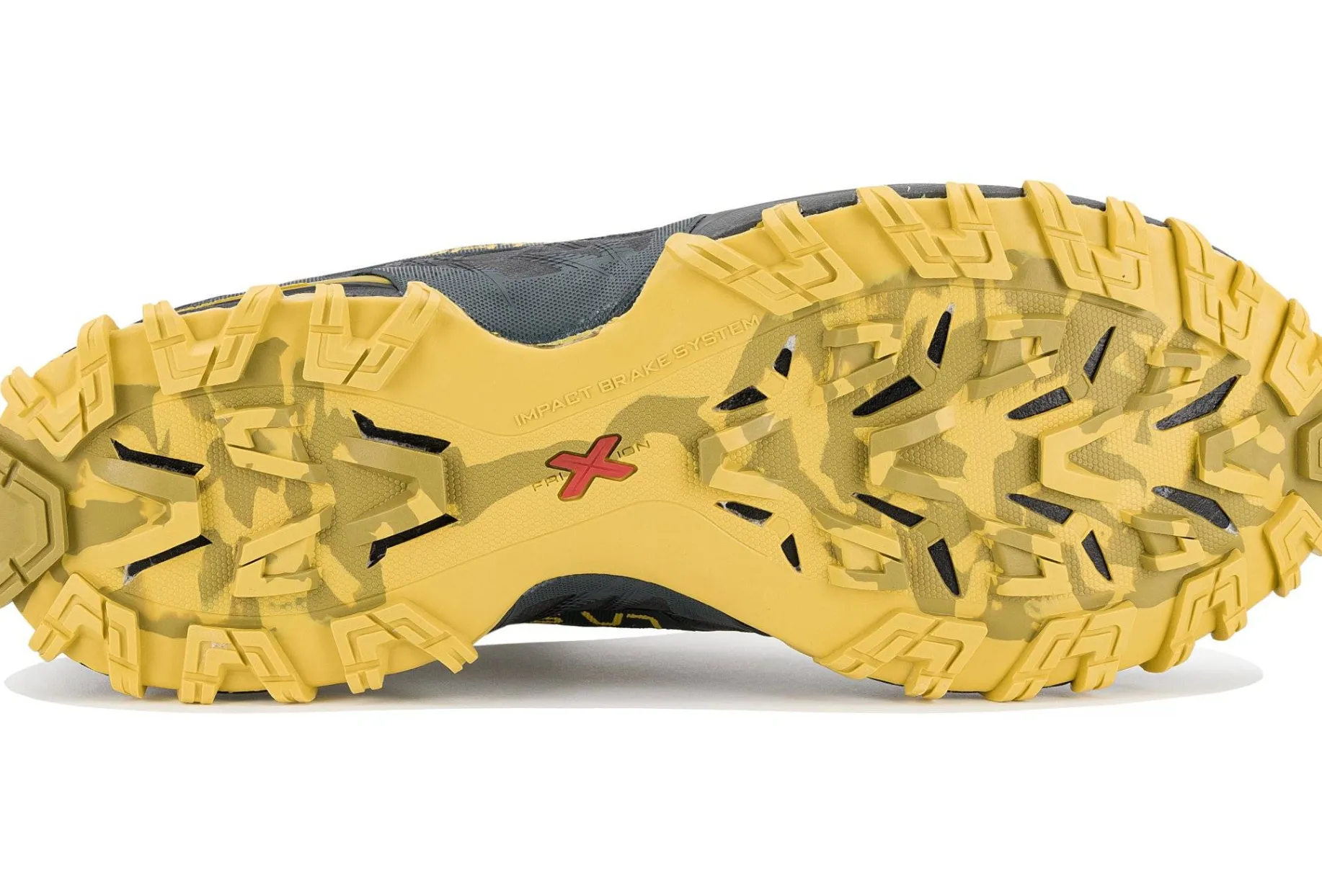 - Ce système innovant est appliqué à la semelle afin qu’elle absorbe l’impact négatif au sol, impulse la traction en montée et améliore l’accroche en descente. Le positionnement unique des crampons permet au maximum d’entre-eux d’être en contact avec le sol, pour une absorption d’impact optimale.