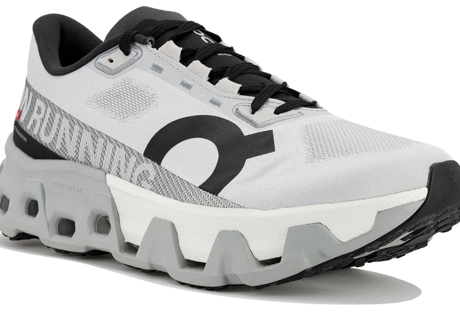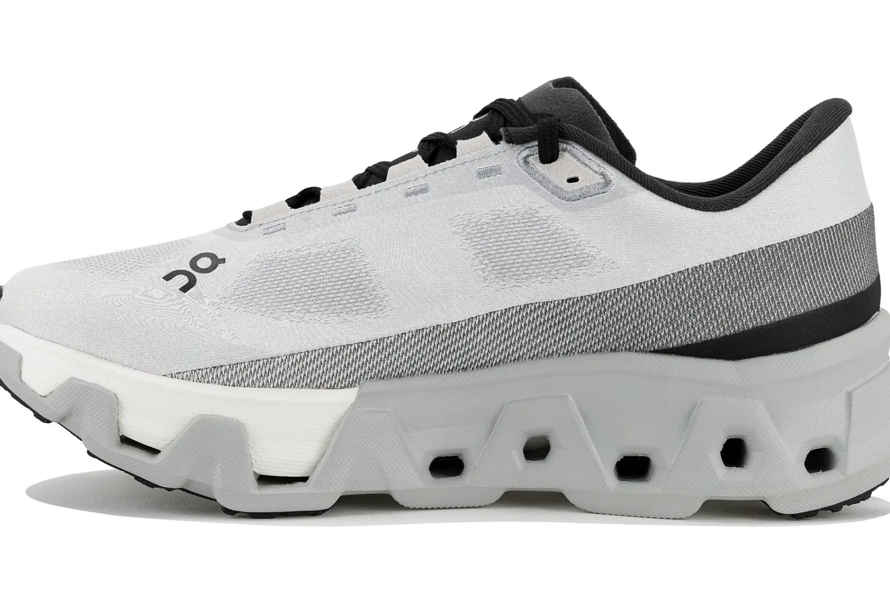 - Empeigne (partie supérieure qui enveloppe le pied) : inspirée du modèle le plus compétitif de On, elle facilite la circulation de l’air pour vous offrir une respirabilité indispensable. Elle veille à une stabilité maximale au niveau du talon et se dote de lacets antidérapants pour éviter les désagréments.