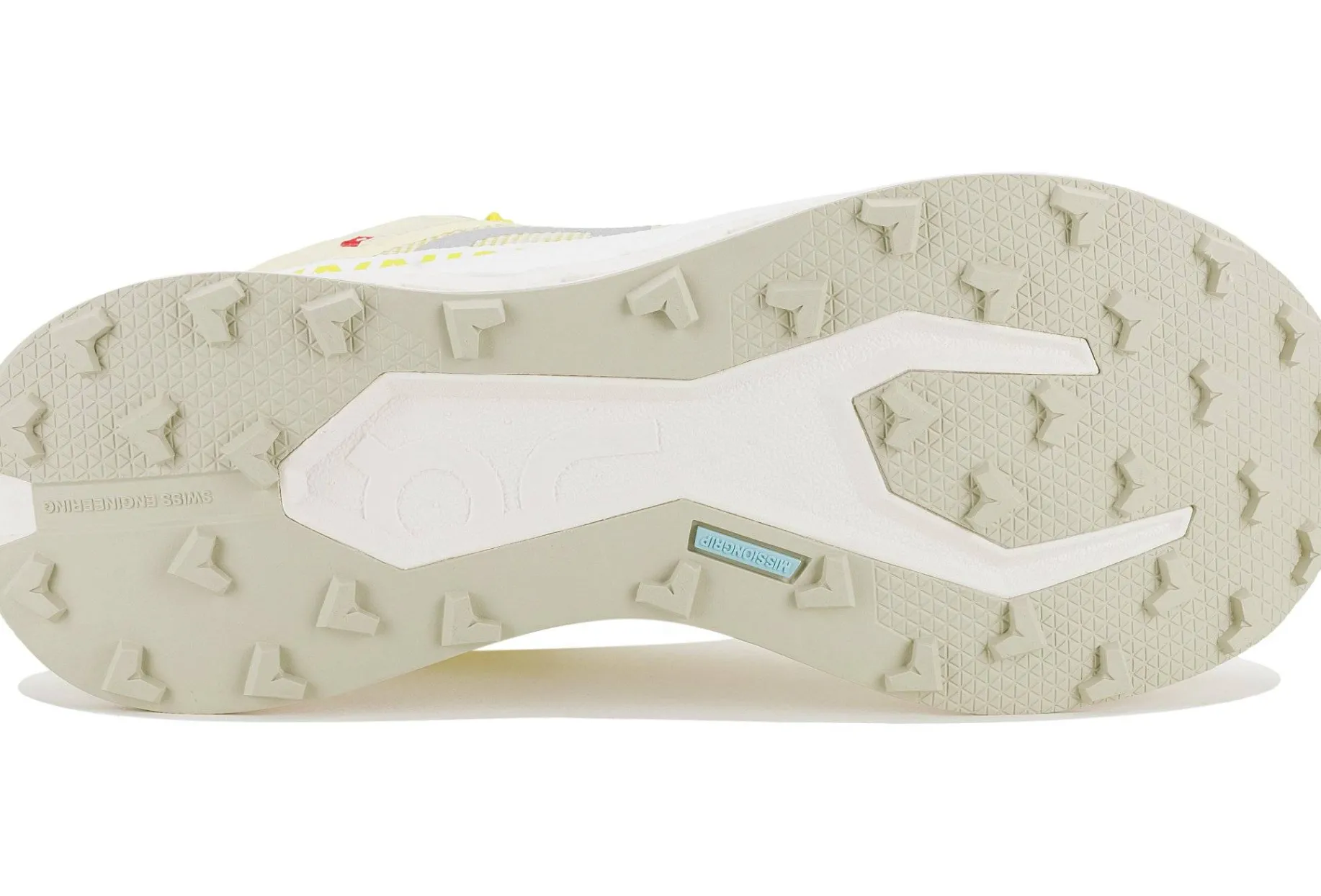 - La semelle extérieure Missiongrip combine des motifs d’adhérence multiples pour garder le contrôle dans des conditions météos changeantes.