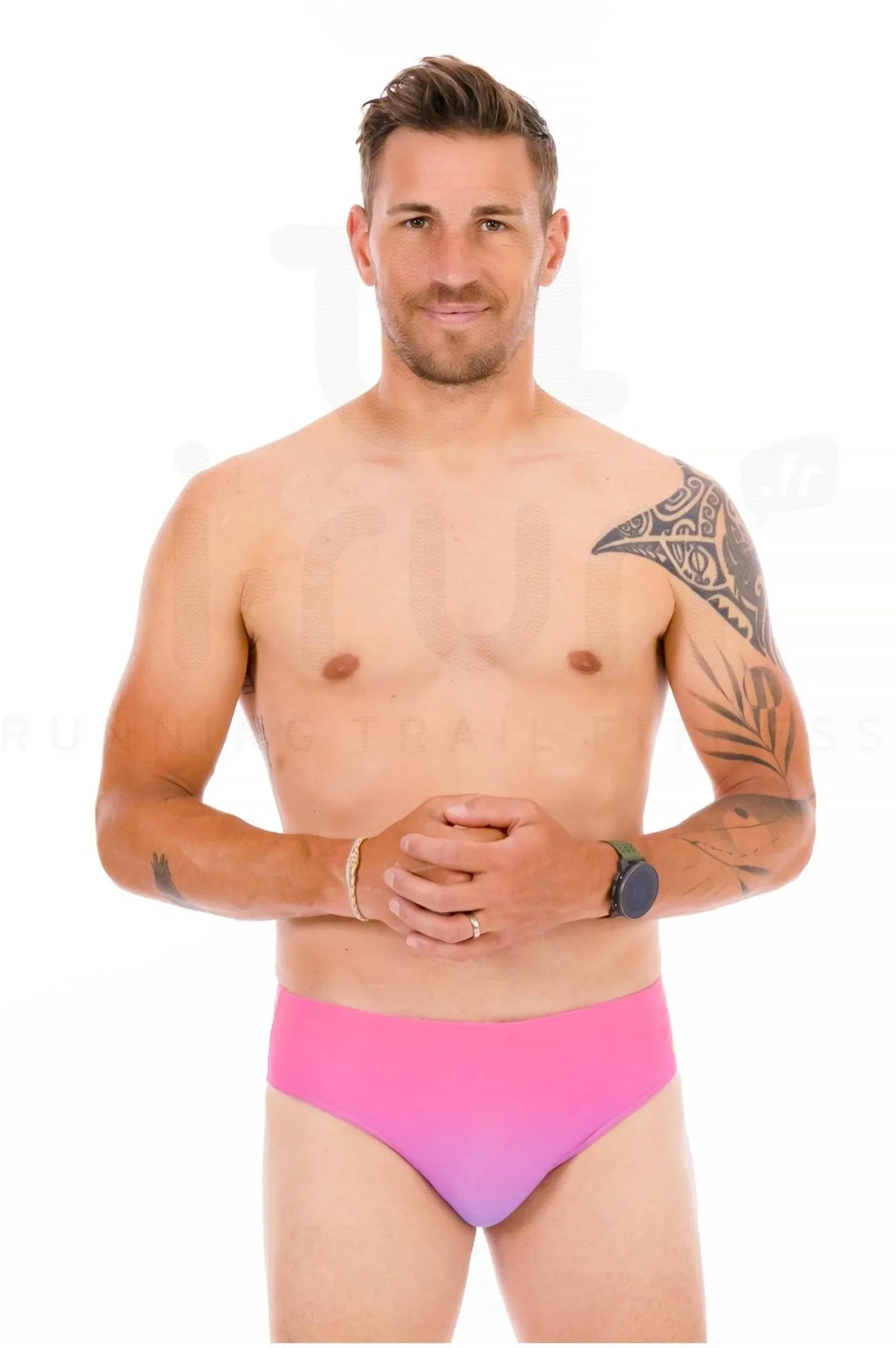 Notre mannequin Julien, mesure 1m78 et porte une taille 90.