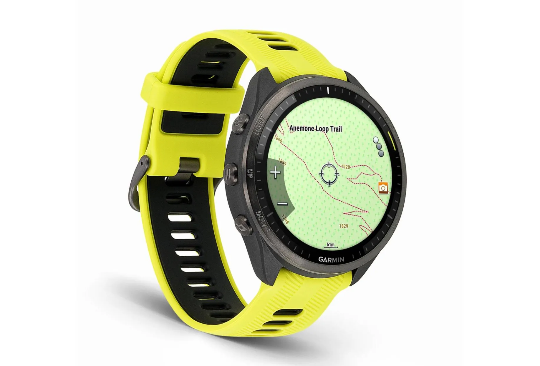 Vous accédez aisément à vos notifications et à votre musique via l’écran tactile AMOLED. La lunette en titane apporte un surplus de robustesse et de confort au fil de vos aventures.