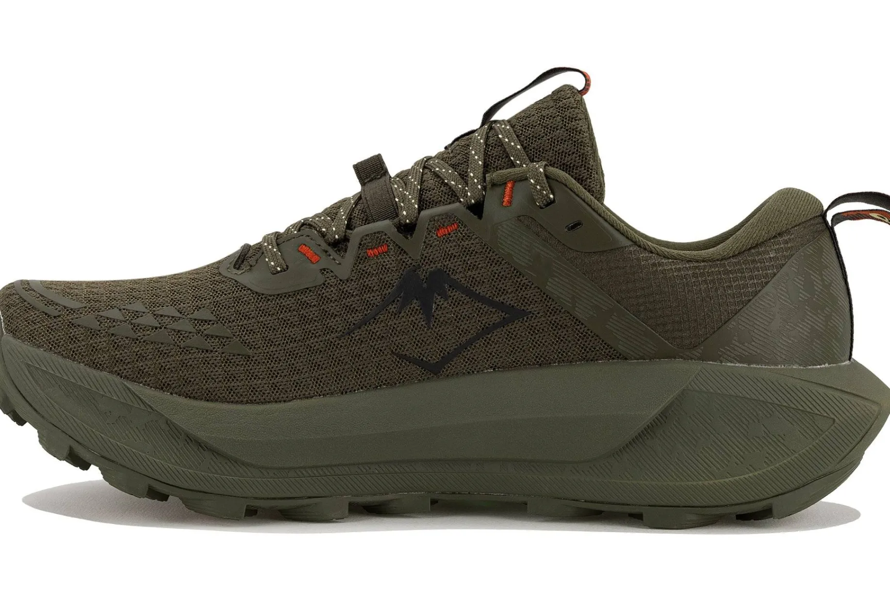 - Empeigne (partie supérieure qui enveloppe votre pied) : renforcé aux endroits stratégiques, son mesh garantit une grande durabilité et une respirabilité à la hauteur de vos efforts. Son système de laçage et sa languette à gousset verrouillent votre pied de façon fiable et empêchent la pénétration de débris.