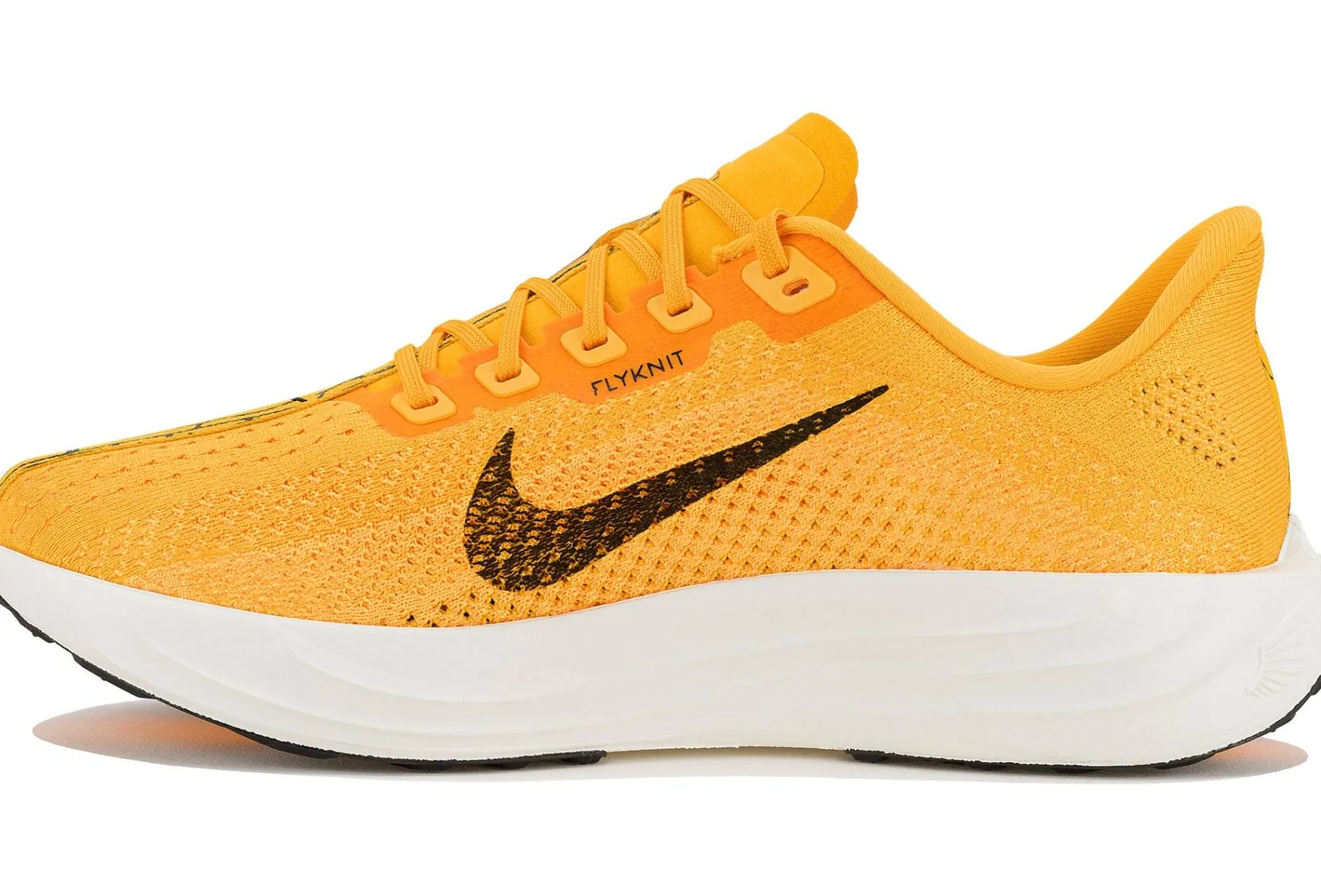 - Empeigne (partie supérieure qui enveloppe votre pied) : Pour plus de légèreté, l’empeigne possède des perforations stratégiques qui augmentent également la respirabilité. Les fibres résistantes et extensibles Flyknit assurent un ajustement précis tandis qu’un support au médio-pied améliore votre stabilité.