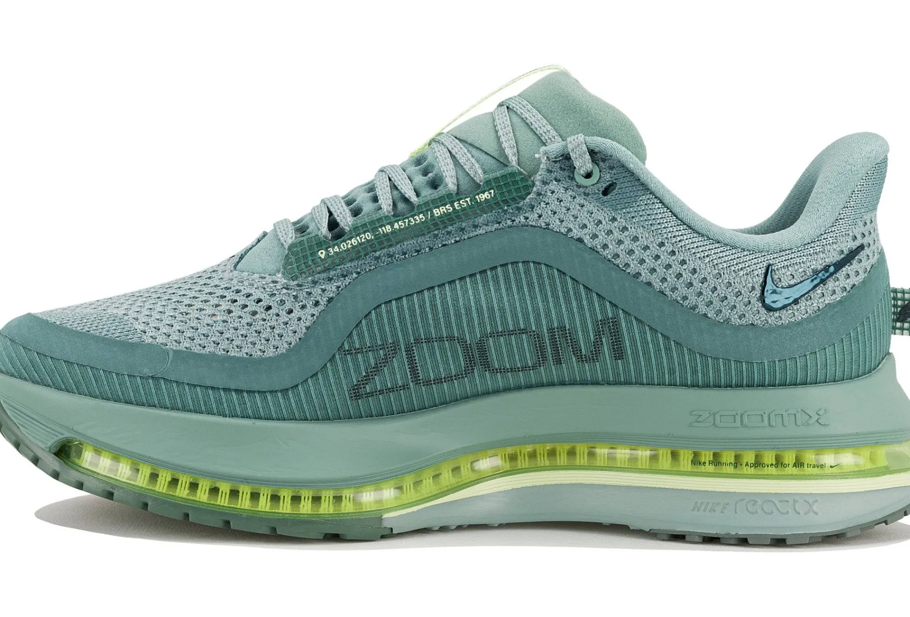 - Une semelle intermédiaire durable qui associe 3 technologies de pointe : Air Zoom courbée et sculptée sur toute la longueur, ReactX au talon et ZoomX à l’avant-pied.