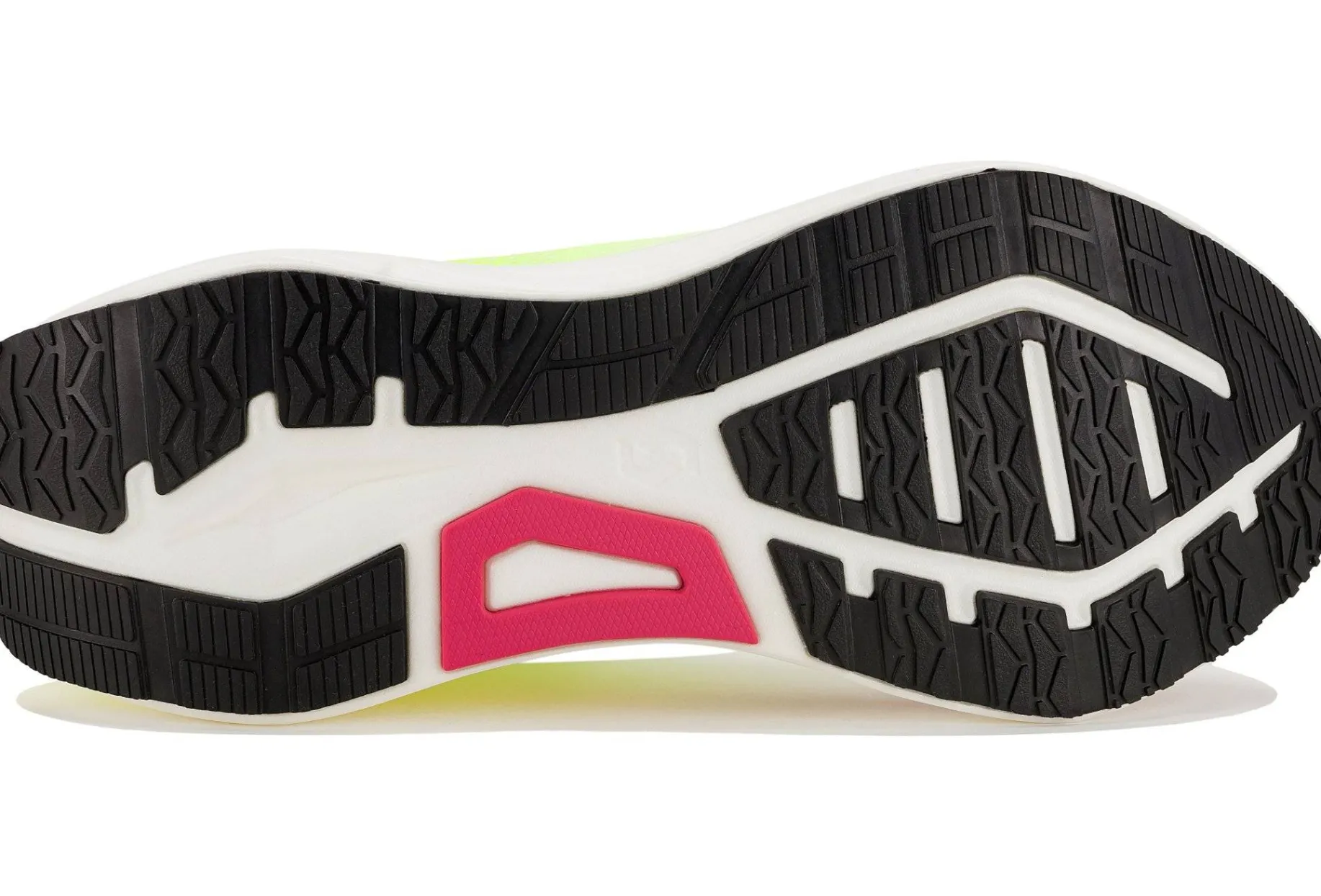La semelle extérieure présente une grande surface de contact avec le sol pour une traction optimale, même dans des conditions humides. Conçue pour améliorer l’efficacité de la course sur route et sur surfaces dures.