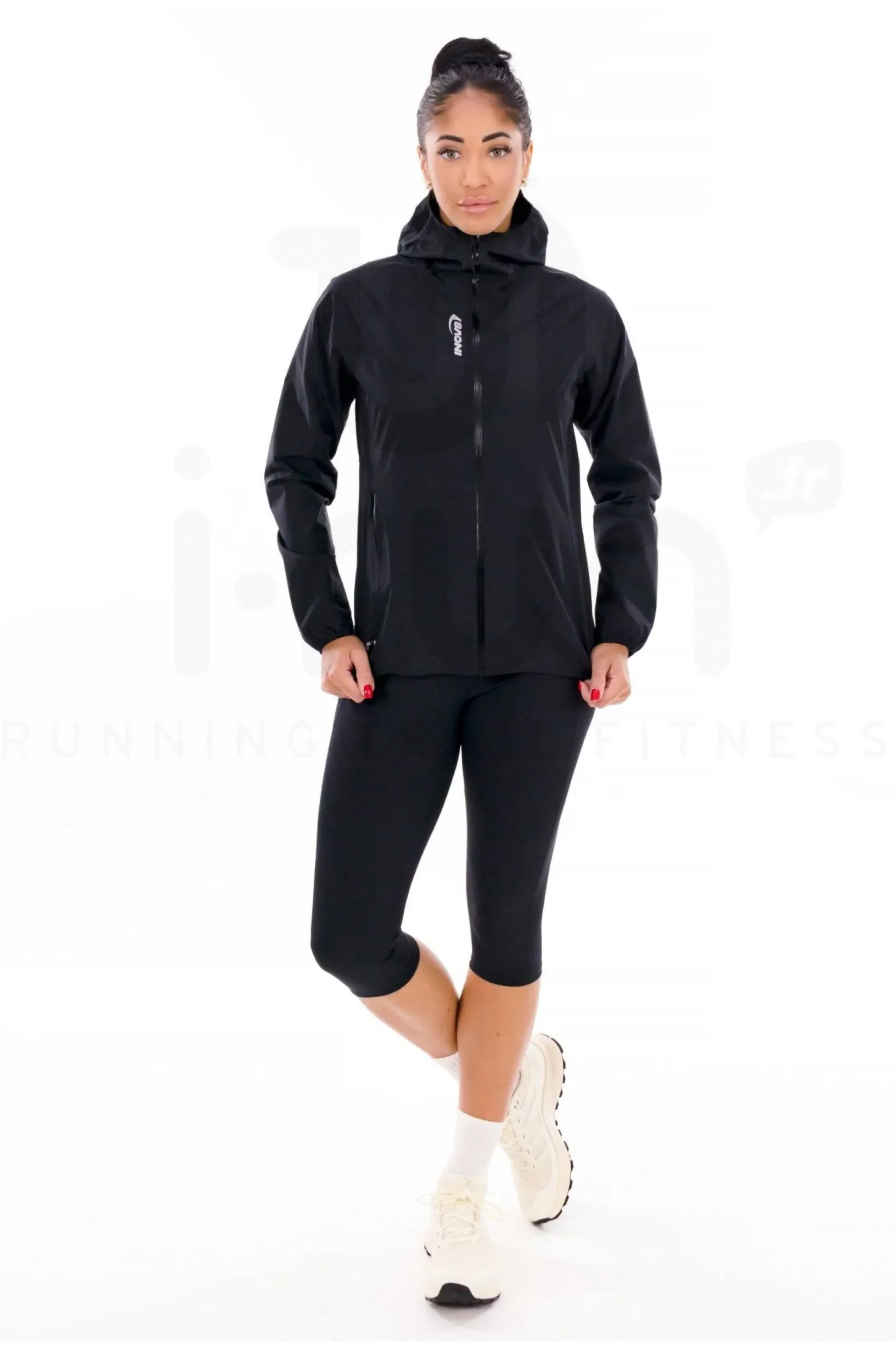 La veste femme Inov-8 Stormshell se présente comme une partenaire de choix durant vos sessions sportives outdoor par mauvais temps.