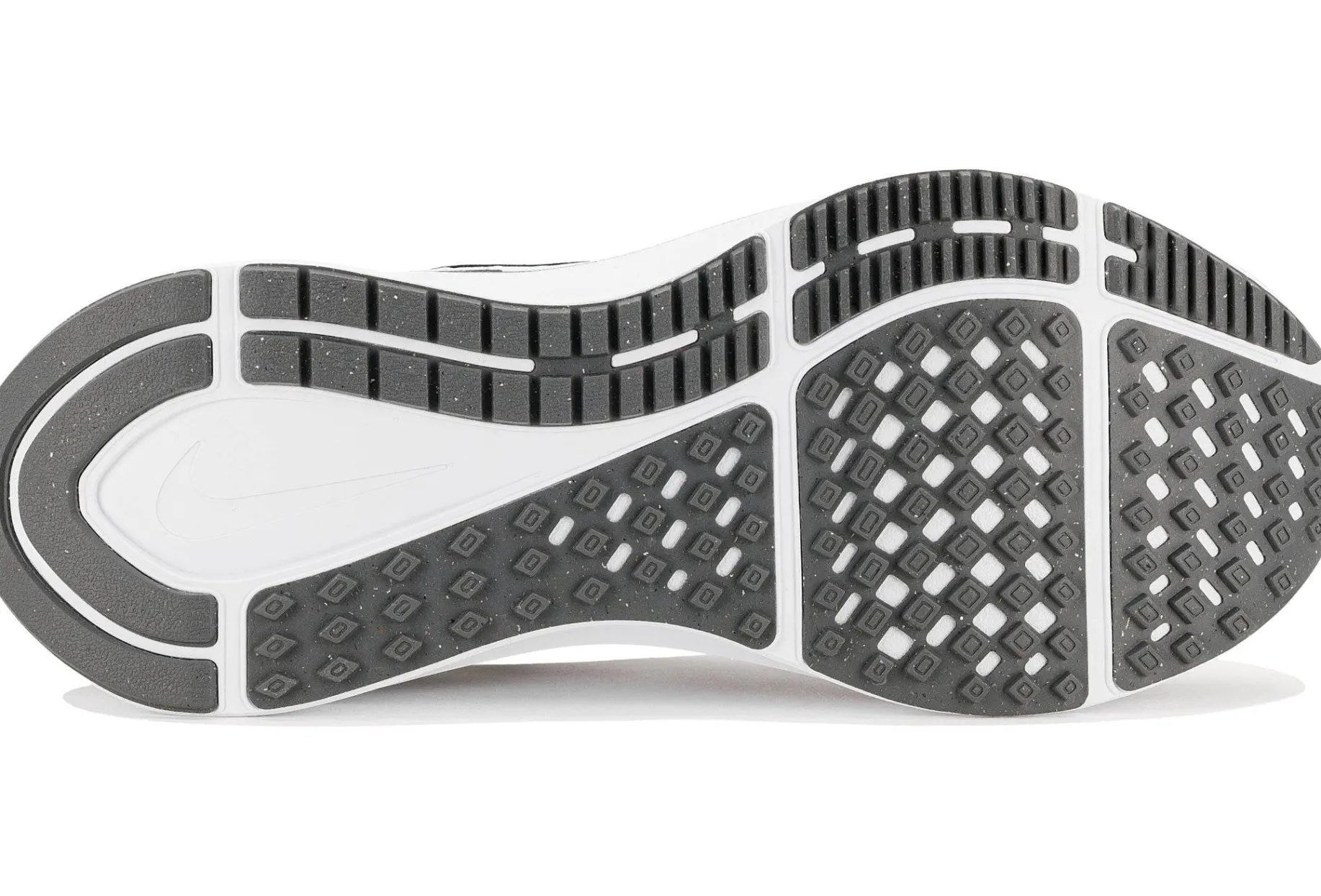 - Amorti : La semelle intermédiaire est composée d’une couche épaisse de la mousse Cushlon 3.0 pour un amorti puissant et des réceptions en douceur. L’unité Air Zoom à l’avant vous permet de décoller du sol sans difficulté et de profiter d’un retour d’énergie efficace. Un renfort de mousse au niveau de la voûte plantaire empêche votre pied de subir une surpronation trop importante. La forme de balancier améliore la stabilité de vos foulées ainsi que la fluidité.