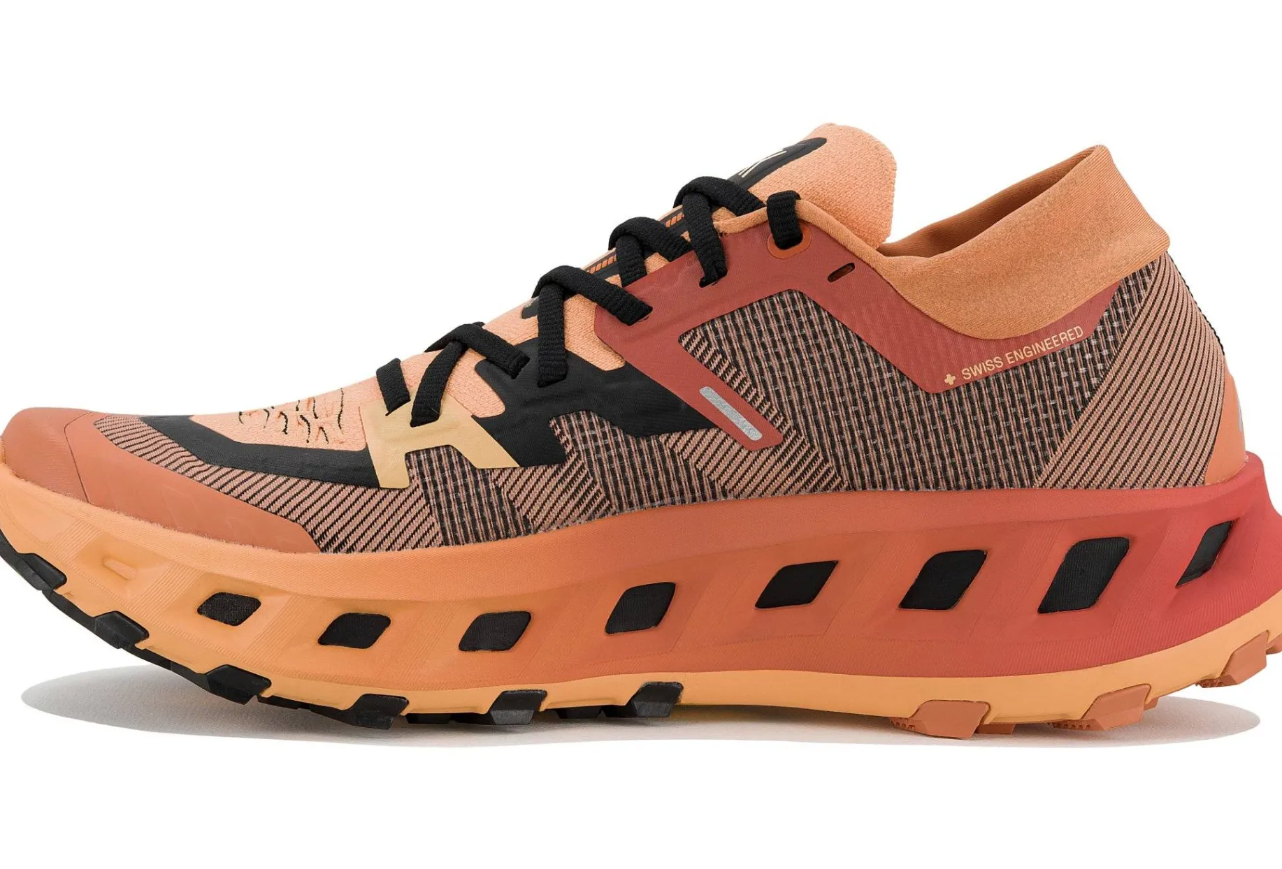 Inspirée par les toiles d’araignée et leur hyper-élasticité, la semelle élaborée en collaboration avec Vibram s’adapte à tous les terrains. Vous profitez de l’augmentation de la surface en contact avec le sol, d’une adhérence et d’une traction exceptionnelles.