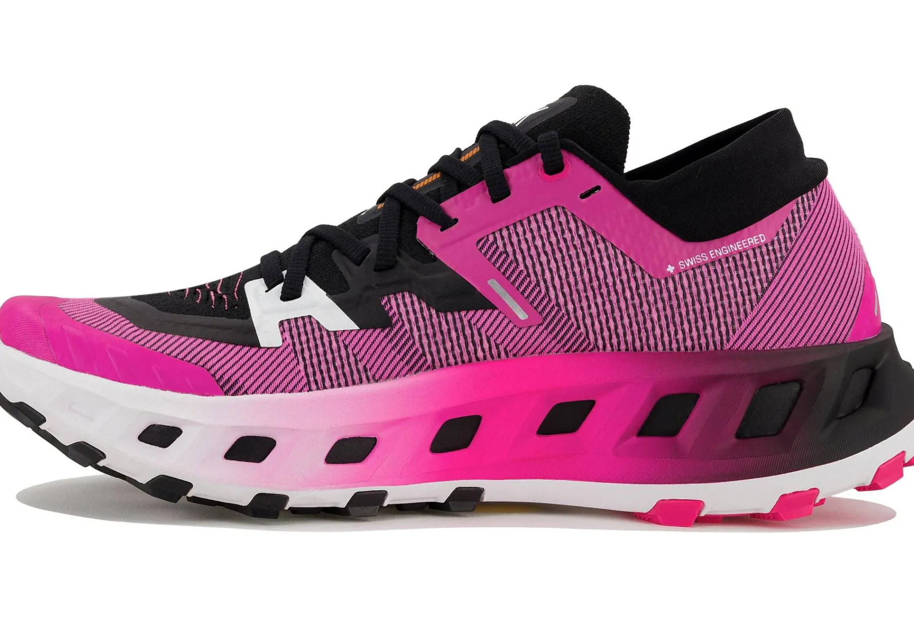 Inspirée par les toiles d’araignée et leur hyper-élasticité, la semelle élaborée en collaboration avec Vibram s’adapte à tous les terrains. Vous profitez de l’augmentation de la surface en contact avec le sol, d’une adhérence et d’une traction exceptionnelles.
