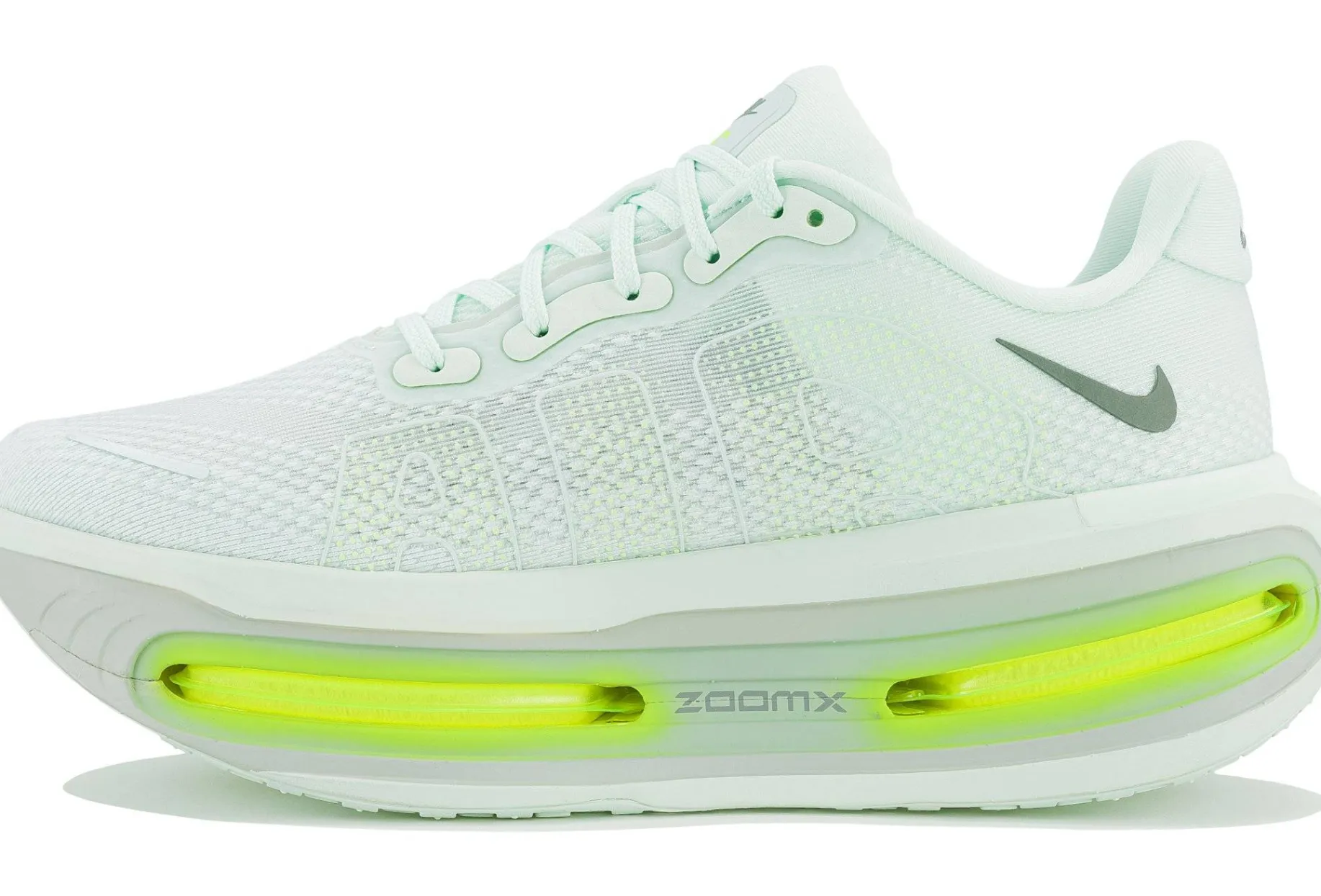 Grâce à la pression de l’air et à la contraction des fibres, celles-ci permettent au coussin Zoom Air d’absorber les chocs, de retrouver sa forme plus rapidement, d’où une réactivité immédiate en une fraction de seconde.Grâce à son profil bas, le coussin d’air permet de garder le pied près du sol, pour des sensations exceptionnelles. - Nike ZoomX
