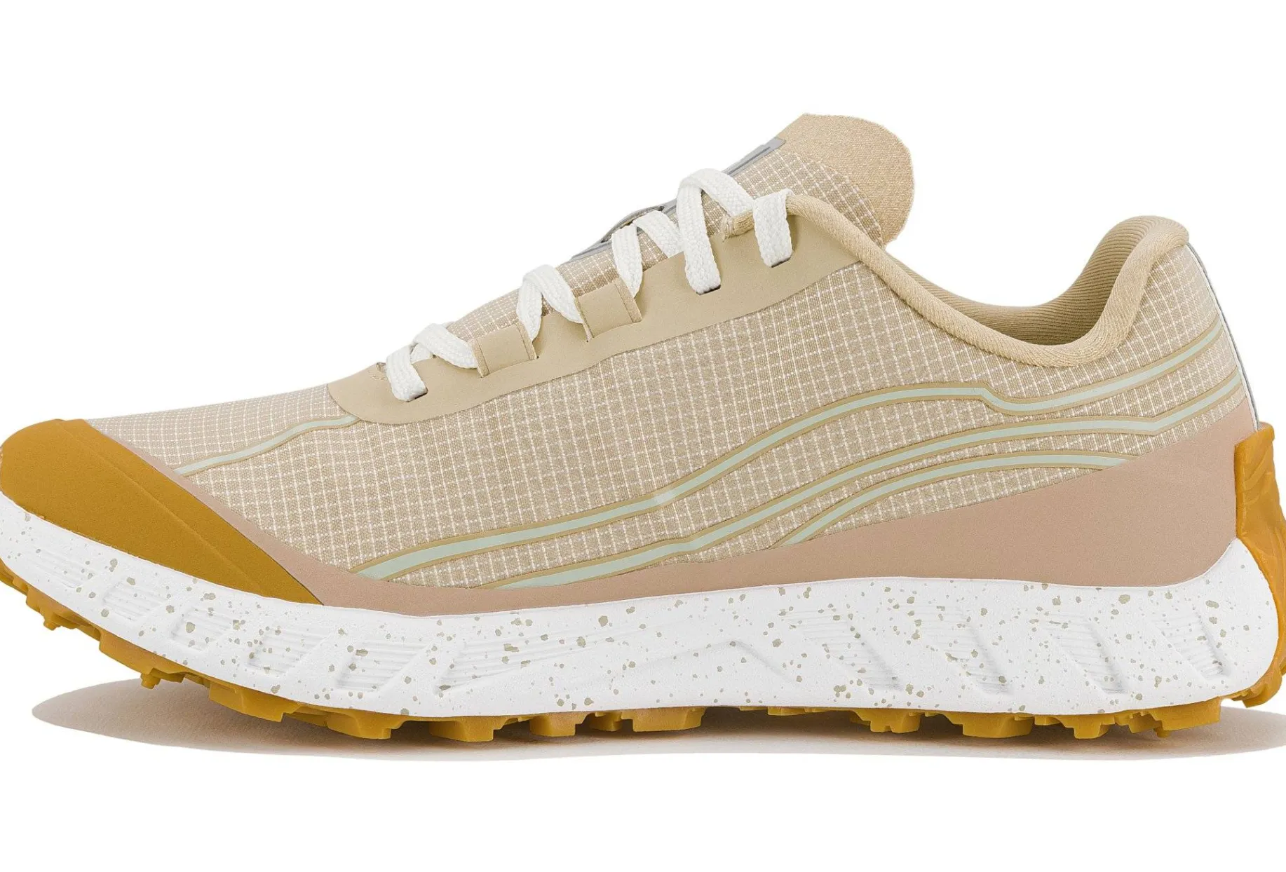 La tige en Bio-Dyneema à mailles ouvertes et en matériaux recyclés est incroyablement résistante et légère. Le motif de tissage permet une respirabilité maximale et une évacuation rapide de l’eau.