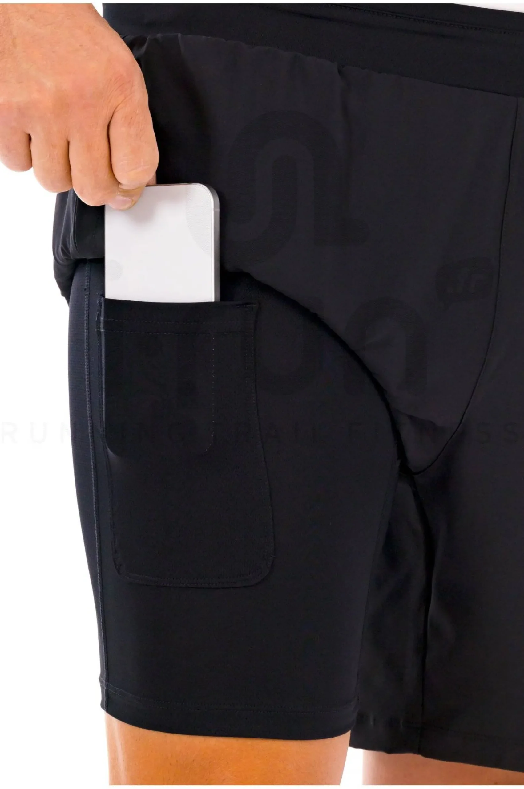 Deux poches latérales et un rangement au niveau du cuissard transportent vos effets personnels durant vos efforts.
