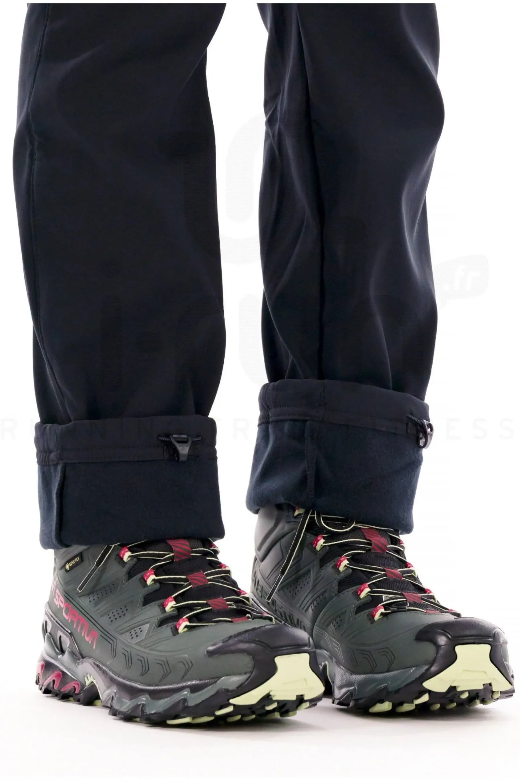 - Cordon de serrage aux chevilles avec clip à guêtre : ajustement et isolation