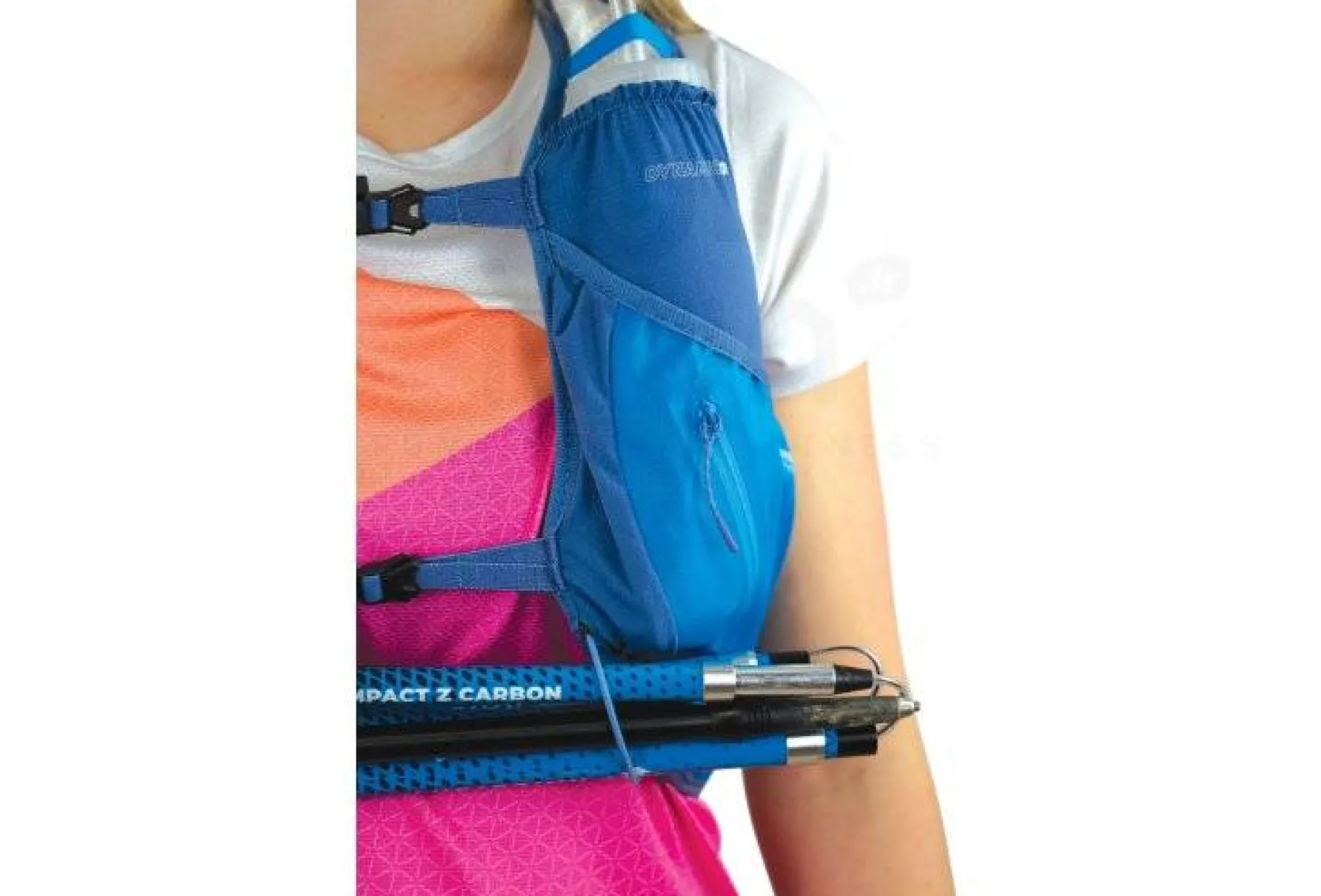 Vous disposez également d’une poche zippée étanche pour y ranger votre téléphone, ainsi que d’un rangement stretch avec porte-clés. Vos bâtons trouvent leur place dans les boucles à l’avant ou bien dans le compartiment prévu à cet effet à l’arrière.