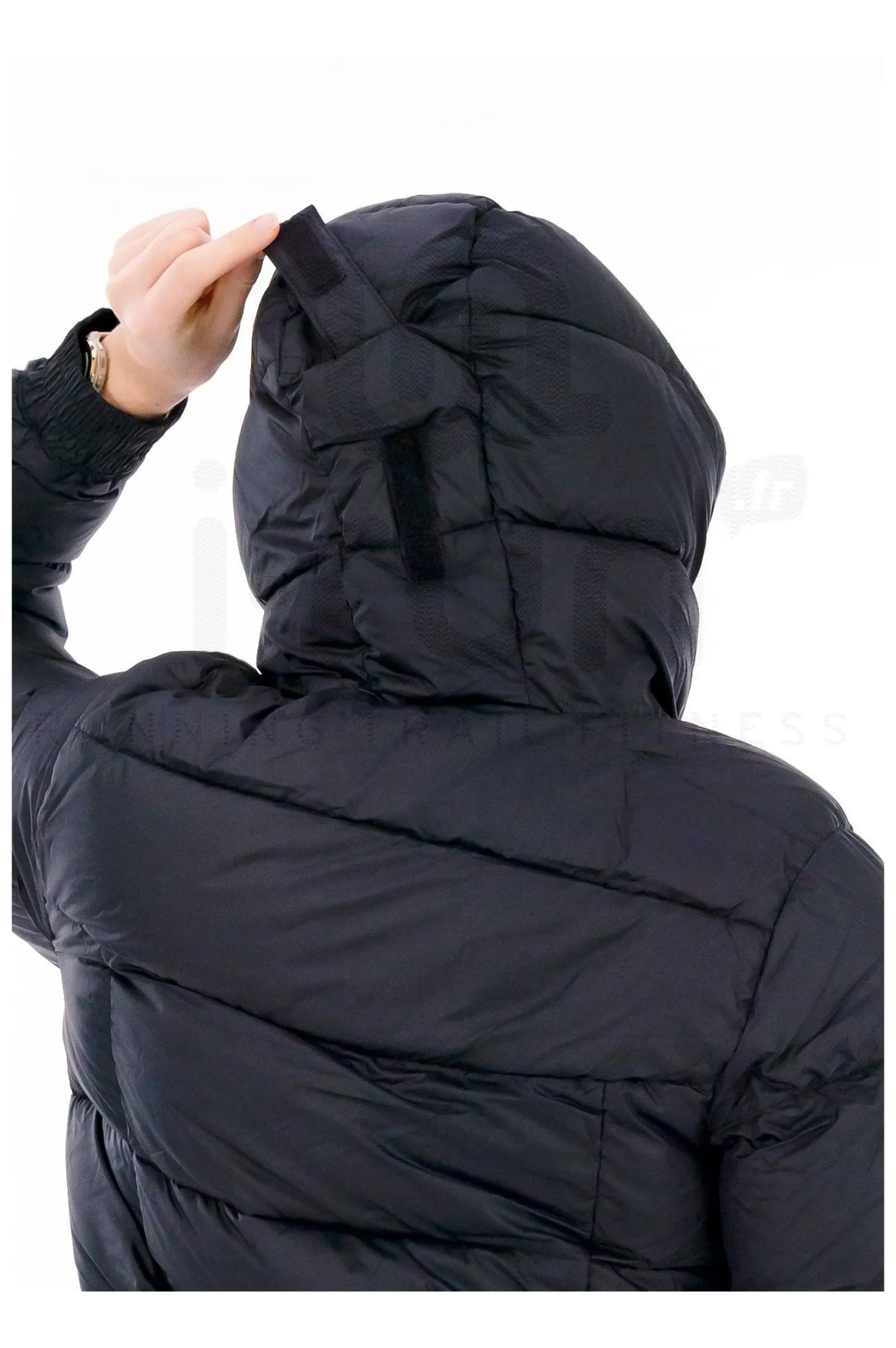 - Capuche avec cordon de serrage et bande auto-agrippante : protection ajustable